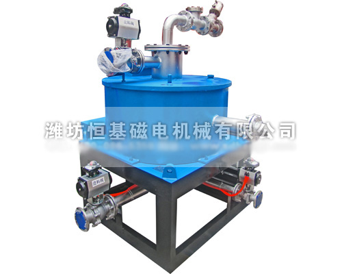 在连续磁选作业中,为避免矿流阻塞或溢出,设备一般都是按逆矿流的方向启动,顺矿流的方向停机,出现故障时发出报警信号并停止向该强磁磁选机给矿和自动导流,避免事故扩大。