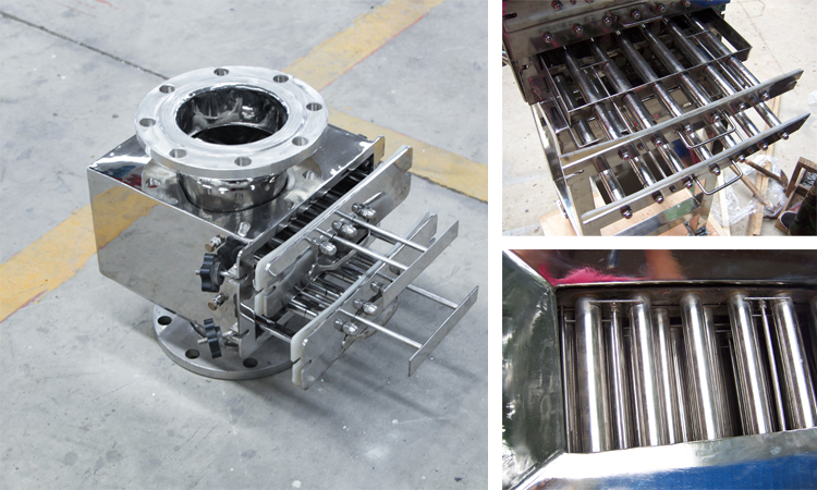 ◇CBS型抽屉式磁性过滤器主要用于如食品、制药、化学、石英砂、陶瓷等高敏感应用。其强力耐磨的机壳由防锈不锈钢制成。所有表面和焊接头都无缝合线而且高度镜面磨光。其强力的磁性甚至可以清除流动、干燥的、流动性好、粉状的、细小颗粒(颗粒直径<6mm),薄片状物料中的铁磁性物质。◇卸铁方式:手动清除。