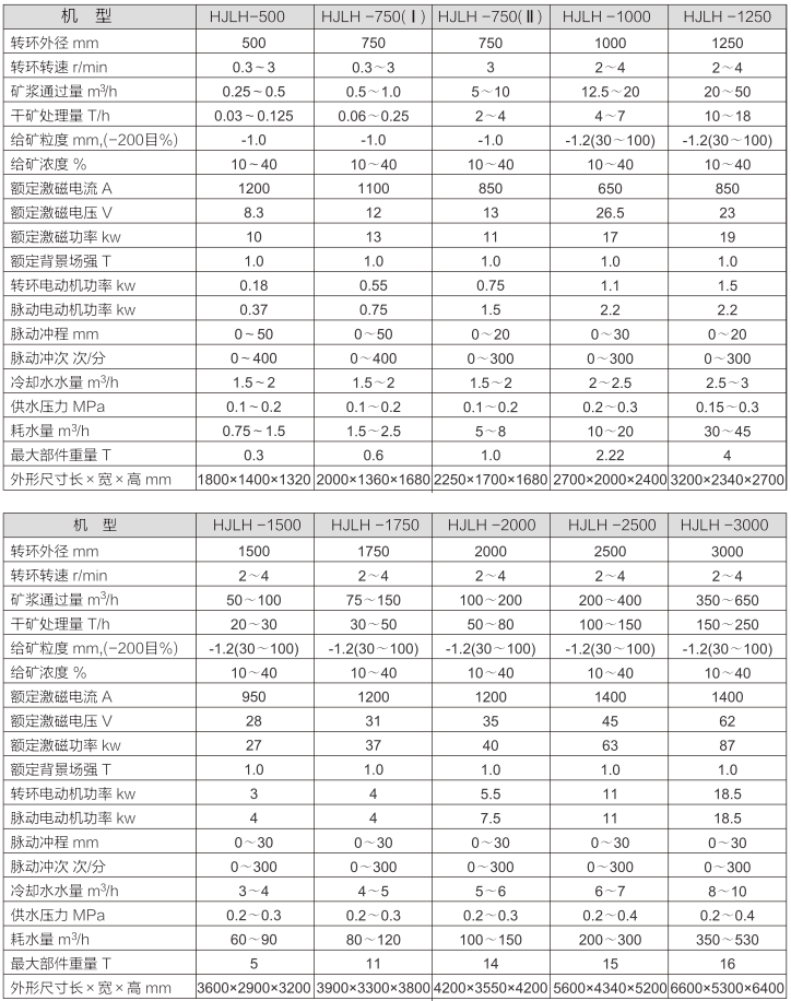 本设备的选型,原则上以矿浆通过能力为准。在实际应用中对矿物进行分选时,选矿指标会因矿浆浓度的不同而造成一定的影响,如需获得较好的选矿指标可以根据实际需要适当降低矿浆浓度。当分选的矿物中磁性物料比例偏高时,整机的处理量将会受到磁介质面积和吸附磁性物料总量的限制,也应适当降低入矿浓度,以获得较好的选矿指标。