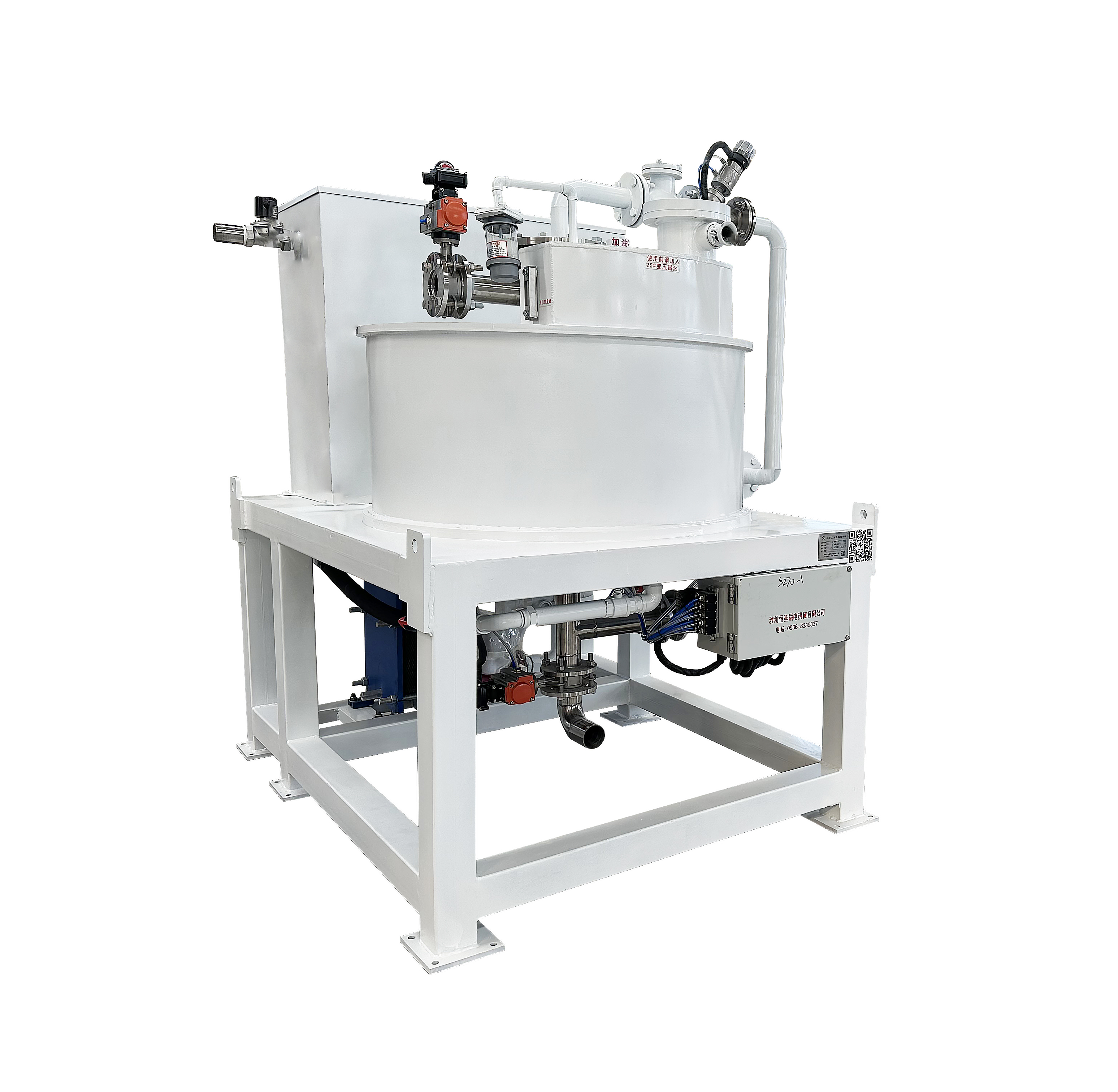 DCX型湿法全自动磁分离机广泛适用于食品、药品、化工等行业中液体或者浆料中的铁质。其特殊的流向设计和磁场空间布局可轻松的去除液体或者浆料中10-15000目的弱磁性铁质。特别针对于如食品、药品、化工等行业的流体特性做了特殊设计和改进。是目前食品药品行业液体和浆料中除铁性能较高的湿法全自动磁分离设备。二、示意图