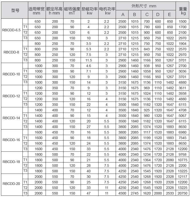 RBCDD隔爆型自卸式电磁除铁器适用于有甲烷成份的爆炸性气体环境和有煤尘的矿井中。本体采用自然冷却式设计,体积小,散热快,重量轻。全封闭结构具有防潮,防尘,耐腐蚀等特点。转动滚筒采用自动纠偏结构设计,配套隔爆型电机、阻燃环形带。配合输送带使用,除去混杂在非磁性物料中的磁性铁质。整流控制设备具备智能型保护,设有就地控制和远方控制功能,配套矿用隔爆型电控柜使用可实现连续不断的吸、弃铁。主要应用于各大煤炭企业煤矿井下或矿山、钢铁、化工、电力等其他易燃易爆行业场合或输煤系统中。