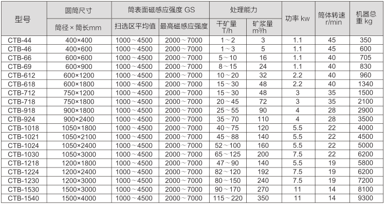 ◇ 筒表面磁感应强度值是根据不同矿物含铁情况和不同的选别要求确定的。磁场强度范围从1000GS至7000GS均可制作。