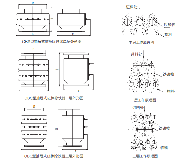 ◇CBS型抽屉式磁性过滤器主要用于如食品、制药、化学、石英砂、陶瓷等高敏感应用。其强力耐磨的机壳由防锈不锈钢制成。所有表面和焊接头都无缝合线而且高度镜面磨光。其强力的磁性甚至可以清除流动、干燥的、流动性好、粉状的、细小颗粒(颗粒直径<6mm),薄片状物料中的铁磁性物质。◇卸铁方式:手动清除。