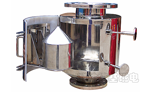RCYZ型垂直管道式永磁除铁器是一种以永磁材料产生强大磁场吸引力的节能型设备,内部采用钕铁硼材料组成的环状磁系,圆锥形体,结构合理,磁场强度高。可与固态原料输送设备连接,活动式门扣,清除铁质方便,适用于食品、面粉、陶瓷、化工、水泥、建材、石英砂等行业各类固态小颗粒和粉末状物料中除铁。三、主要技术参数