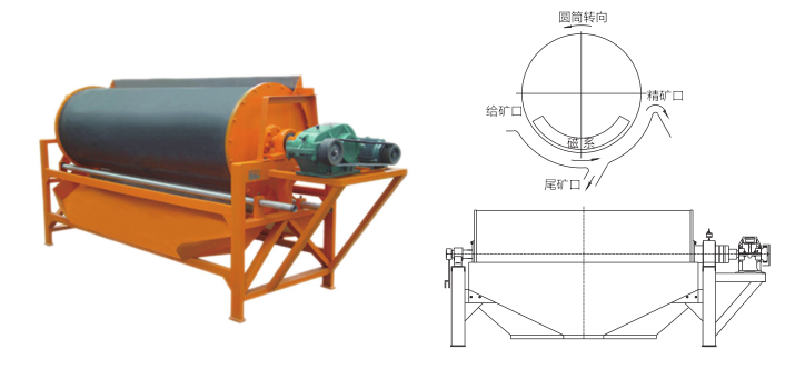 CTS型顺流湿式预选机适用于湿式选别矿石粒度为6~0mm的较粗粒度强磁性物料的预选和精选,或者除去非磁性矿物中混杂的强磁性矿物。本机可以连续给矿和排矿,磁场强度大,磁场梯度高,工作间隙大,具有较高的处理能力。亦可多台串连工作。二、示意图