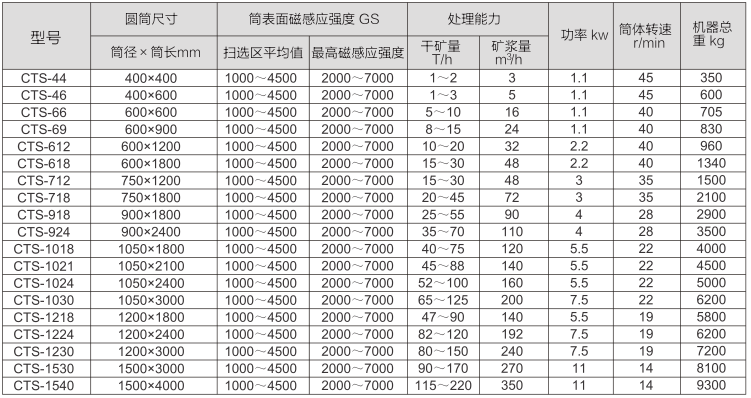 ◇筒表磁感应强度中扫选区平均值和最高磁感应强度值均根据不同矿物含铁情况和不同的选别要求确定的。